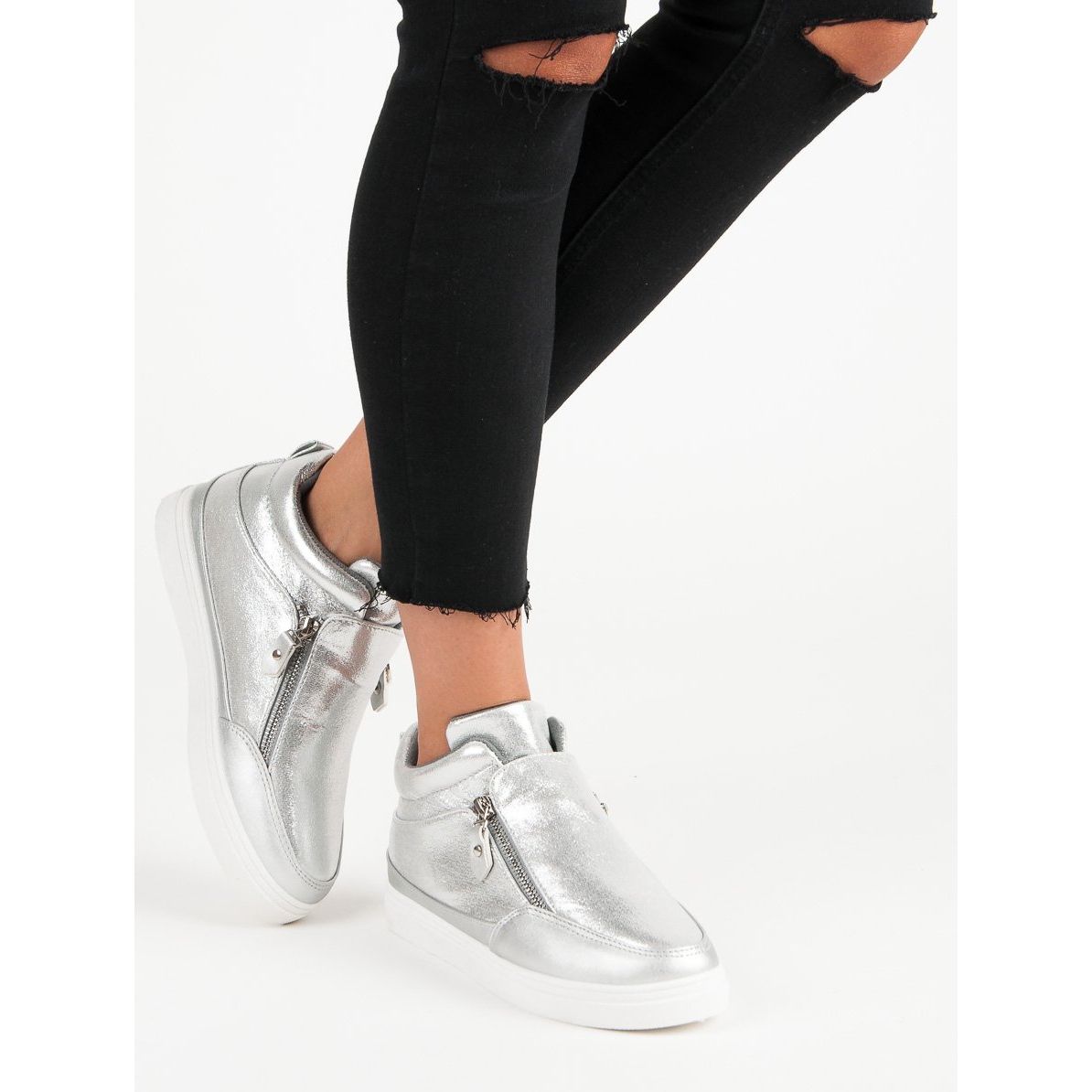 Silver sneakers med dragkedja är ett perfekt val för kvinnor som vill sticka ut från mängden utan att ge avkall på komforten. Deras ursprungliga stil passar perfekt in i fashionabla, djärva stilar, och silverfärgen drar till sig uppmärksamhet och ger karaktär till vilken outfit som helst.