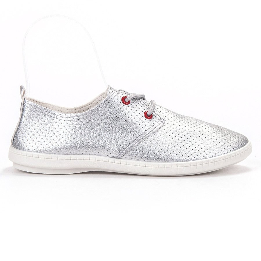 SHELOVET Silver Sneakers i en nyans av grått är en unik kombination av stil och komfort som säkerligen kommer att tilltala varje kvinna. Dessa lätta sneakers, gjorda av högkvalitativa material, är ett utmärkt val för dagligt bruk, vilket garanterar komfort under alla aktiviteter. Deras noggranna utförande och genombrutna mönster ger en unik karaktär, vilket gör att du kan sticka ut från mängden.