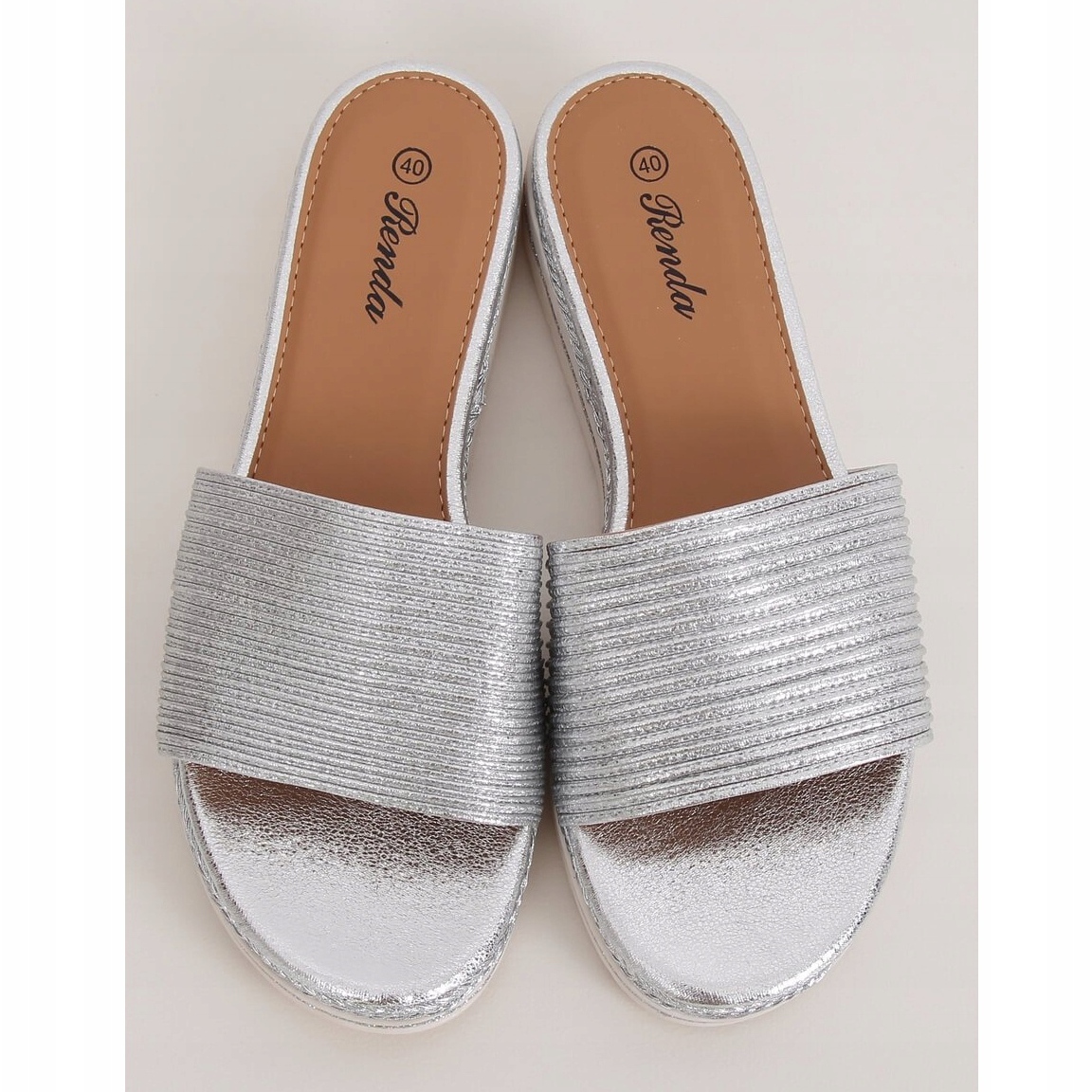 Kvinnors silverflip-flops 222-32 Silver är det perfekta valet för kvinnor som vill kombinera komfort med moderiktig stil varje dag. Dessa eleganta flip-flops med en låg kil, 3,5 cm hög, utmärks inte bara av sin komfort utan också av sin imponerande design. Glitterinlägget och den metalliska finishen drar till sig uppmärksamhet, framhäver sommarens solbränna perfekt och ger glans till alla stylingar.