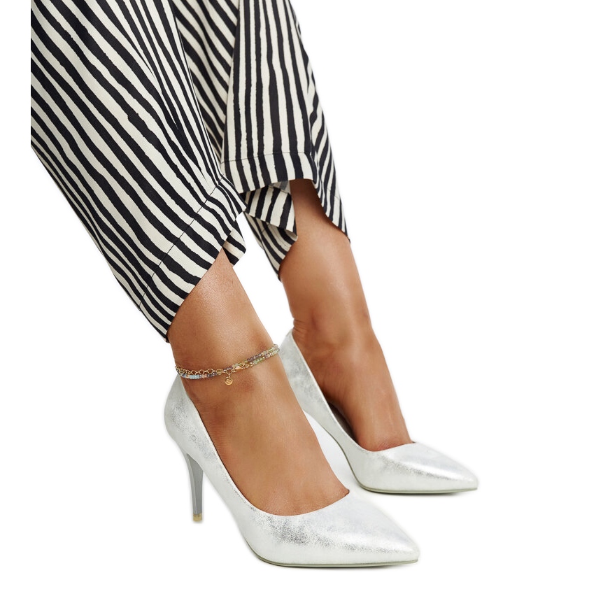 Silver metalliska höga klackar med en läderpaum för att måste i varje modern kvinnokollektion. Deras eleganta, spetsiga näsa lägger till all stil, och det bekväma läderinsatsen gör dem perfekta för speciella tillfällen och varje dag. Tack vare det insatta snittet är det extremt enkelt och bekvämt att ta på sig och ta bort skor.