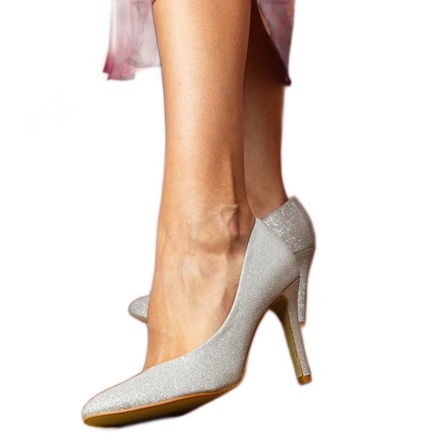 Glitterfinishen i silver gör pumpar idealiska för många speciella tillfällen - från eleganta bröllop, genom tillfälliga händelser, till romantiska kvällar. En klassisk mandeltå och en bekväm slip -i -fästning ger inte bara estetiskt utseende, utan också komfort att bära.