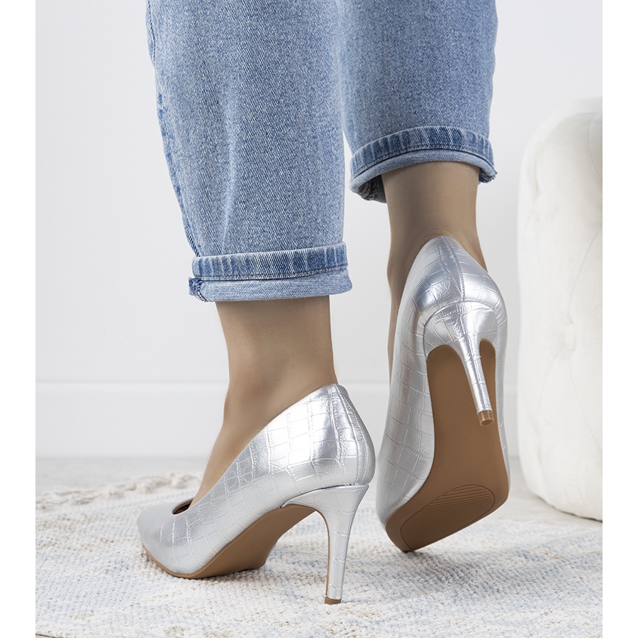 Silver högklackade pumps från Byatt är ett unikt val för eleganta kvinnor som vill lägga till lite glans till sin styling. Perfekt för bröllop, fester eller arbete, dessa pumps glädjer sig med sitt fashionabla snitt och krokodilskinnsstruktur, vilket ger dem en unik karaktär.