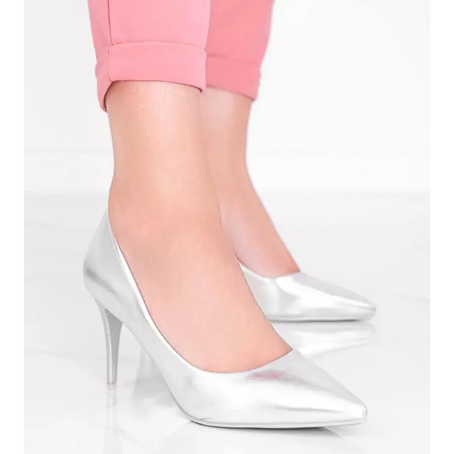 Silver Venicia högklackade pumps är det perfekta valet för kvinnor som vill lägga till elegans till sina feststylingar. Dessa unika skor är gjorda av högkvalitativt ekologiskt läder i en fantastisk silvermetallisk färg som kommer att lysa upp vilken outfit som helst. Materialets känsliga struktur gör att pumparna ser väldigt imponerande ut.