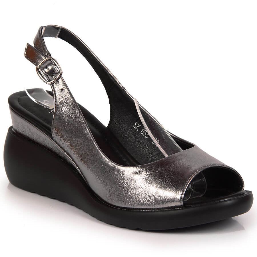 Silversandaler för kvinnor på en kil Sergio Leone
