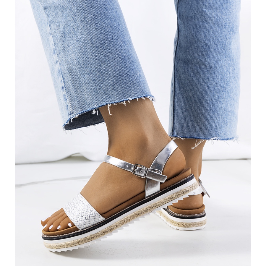 Vi presenterar silversandaler på en dekorerad Acton-plattform - en absolut hit den här säsongen! Dessa unika sandaler kombinerar elegans och stil, och deras höga sula och rika dekoration drar till sig uppmärksamhet. Inspirationen från espadrillor gör dem till ett perfekt komplement till vilken sommarstyling som helst, vilket ger den lätthet och en unik karaktär.