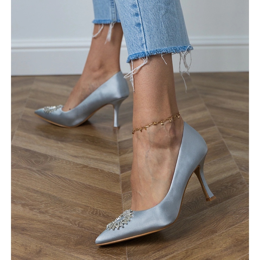Silver satinpumpar med zirkoner är inte bara ett snyggt tillägg, utan också en utmärkt gåva, packad i en estetisk låda. Välj VB22320 -modellen och njut av en fashionabla look som ligger före trender. Detta skor är perfekt för varje kvinna som vill lägga till lite glöd till sin garderob.