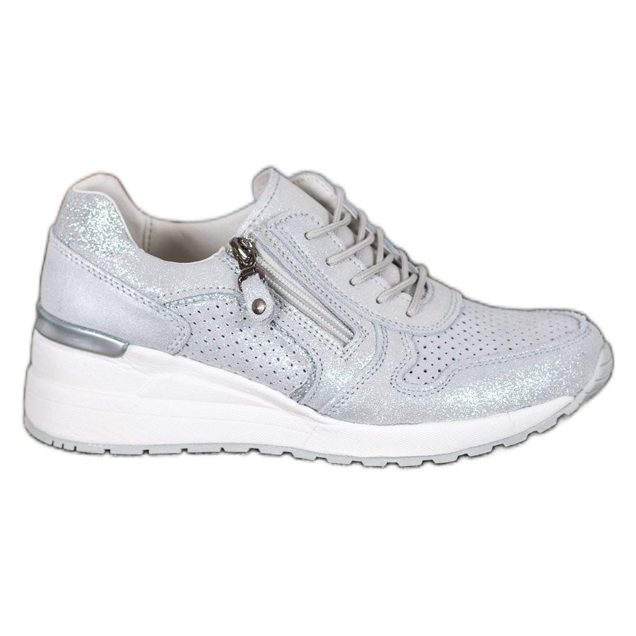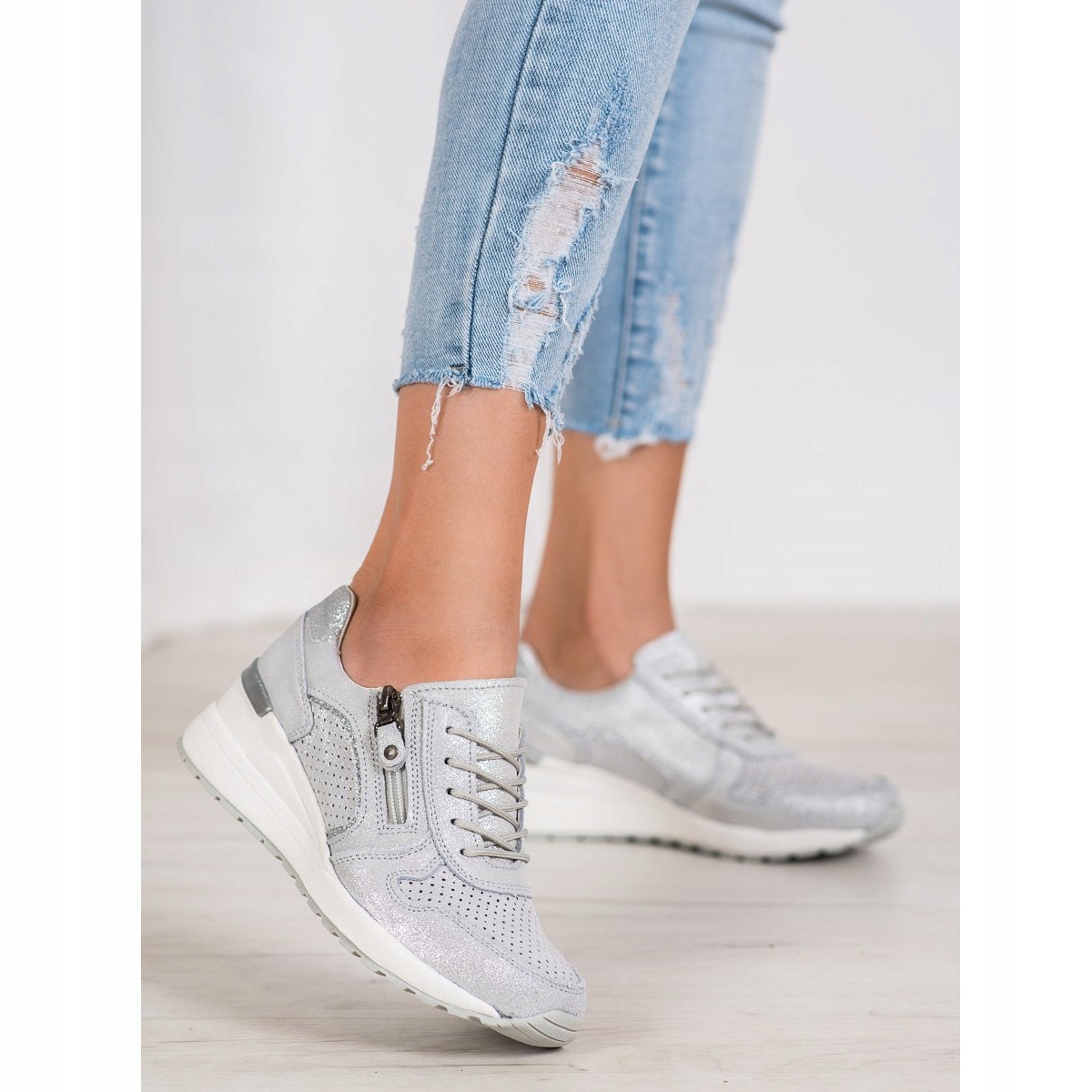Filippo Silver Sneakers With Glitter i grått är ett unikt förslag för alla kvinnor som vill ge lite glans till sin vardagliga styling. Dessa sportskor från det välkända varumärket Filippo gläds åt med sitt eleganta utseende, tack vare den vackra silverfärgen och dekorativa glitterpartiklar som gör varje ögonblick som spenderas i dem unik.