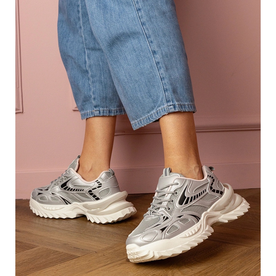 Om du letar efter skor som kombinerar en sportig karaktär med ett fashionabelt utseende är Silver Sports Sneakers på plattformen ett utmärkt val som säkert kommer att uppfylla dina förväntningar! Det är en kombination av stil och komfort som varje kvinna uppskattar.