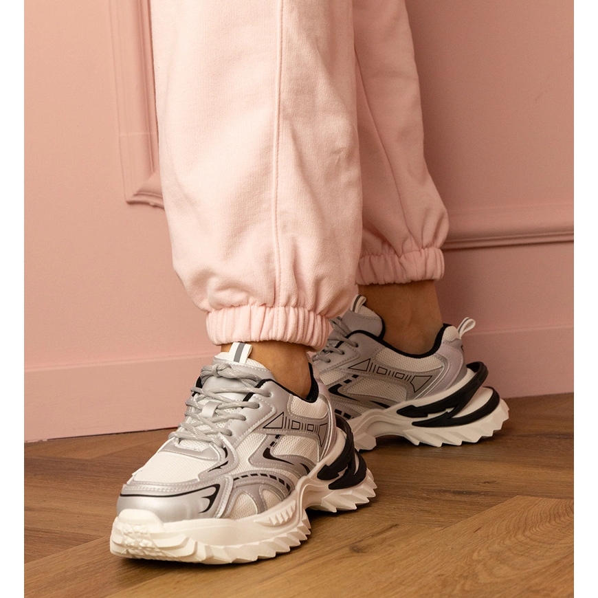 Silversportsneakers på en tjock sula