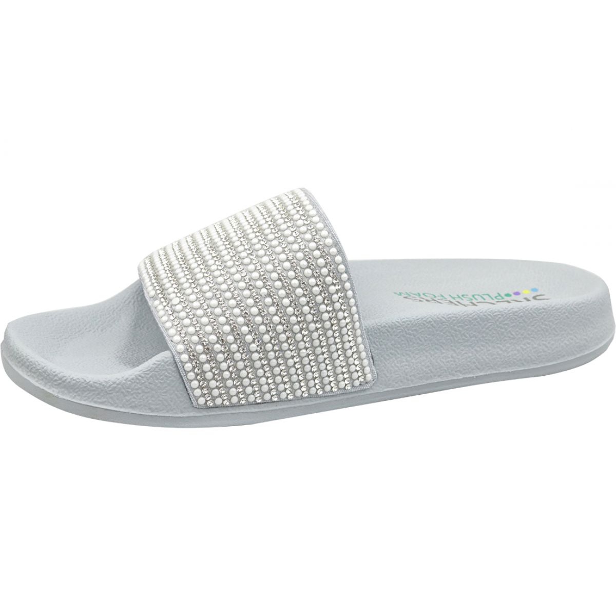 Skechers Pop Ups W 34210-GYSL flip-flops är perfekta för vardagsstyling och passar perfekt till sommarklänningar, shorts eller vardagsbyxor. Avsaknaden av näsrygg och det icke justerbara spännet gör dem lätta att ta på och av, vilket gör dem till ett mycket praktiskt val.
