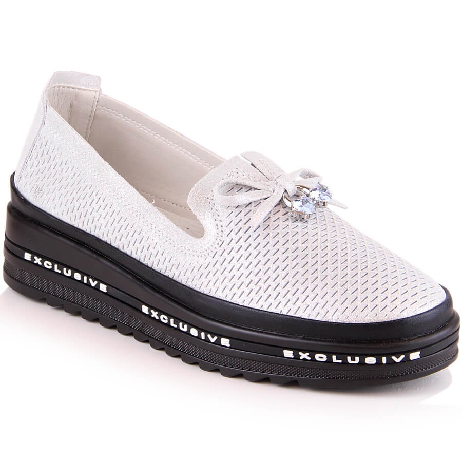 Detaljer: Skinnbekväma dam slip-on skor silver S.Barski AL22400