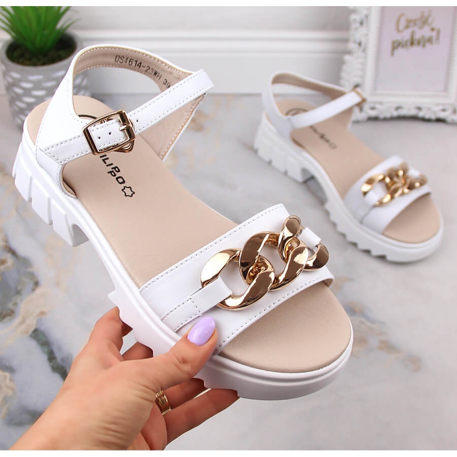 Elegans på sommaren - Lädersandaler för kvinnor med kedja, vit Filippo DS4614