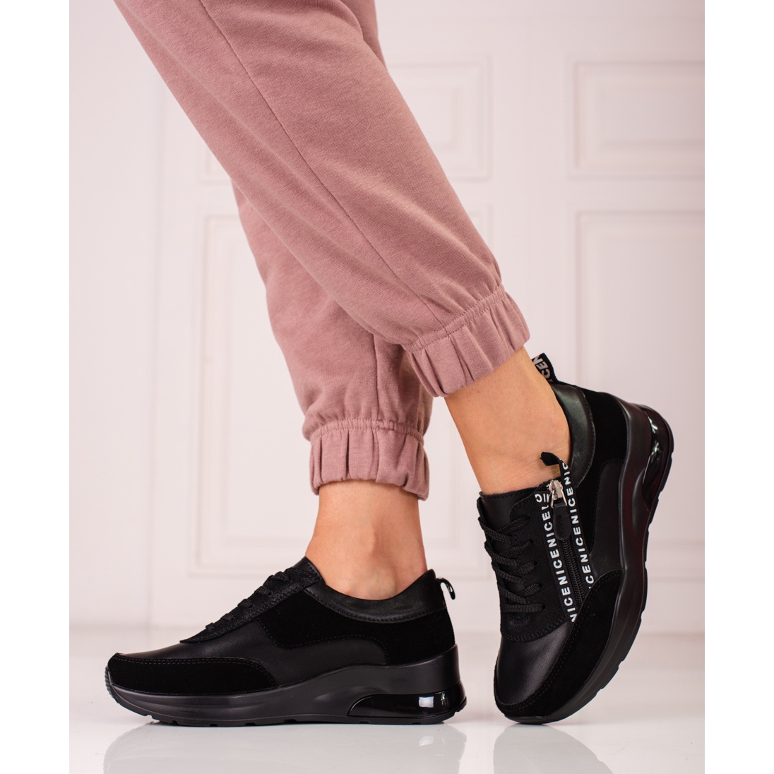 Detaljer: Skinnsneakers för kvinnor med Shelovet-dragkedja svart