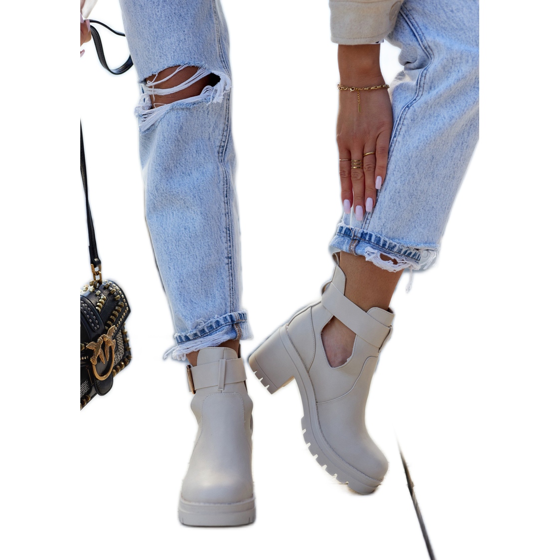 Detaljer: FE1 Skinnstövlar Cut Out-bälte Beige Rosanne