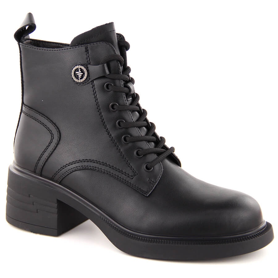 Skorna inre är fodrad med mjuk päls, vilket garanterar trevlig värme på svalare dagar. Höjden på den övre delen av cirka 12 cm når vristen, som ytterligare betonar elegans och stil. Ett bekvämt 5,5 cm högt block säkerställer stabilitet, och den runda näsan lägger till en klassisk karaktär.