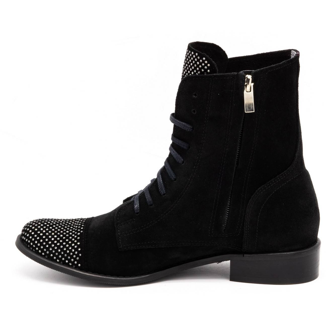 1259EX-modellen utmärker sig inte bara genom sin enkla men effektiva design. Dekorerad med paljetter och strass, kommer det att bli en perfekt accent till alla stylingar. Dragkedjan och snörningen gör det enkelt att ta på och anpassa fotens form. Den höga ankelöverdelen framhäver dessutom benlinjen, vilket ger det hela en sublim karaktär.