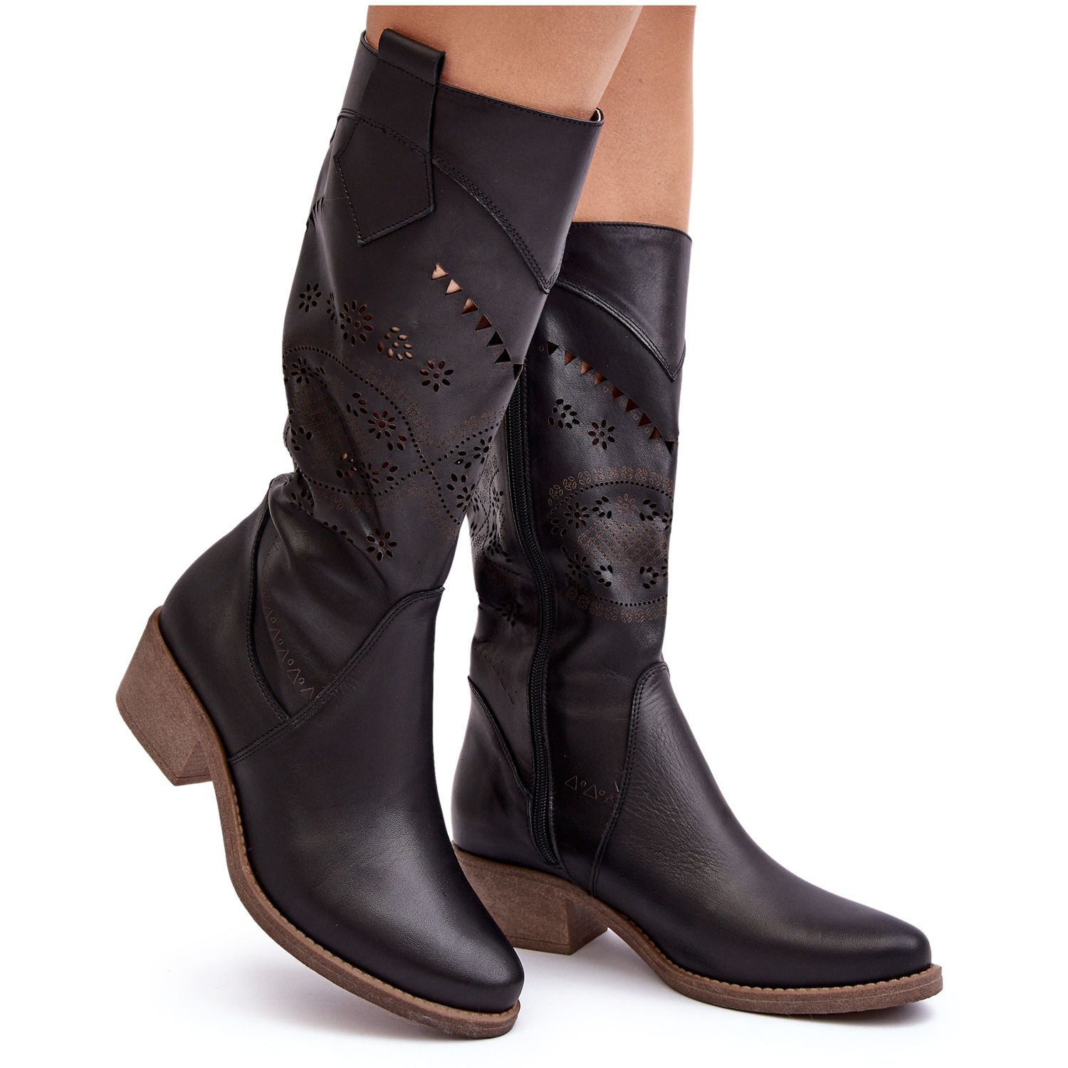 Inna marka Skinnstövlar med genombrutet mönster, Black Sierra svart