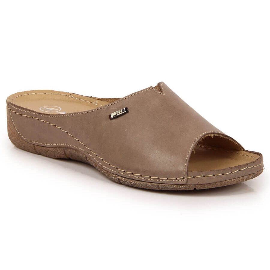 Detaljer: Skinntofflor för kvinnor på en beige Helios 105 kil