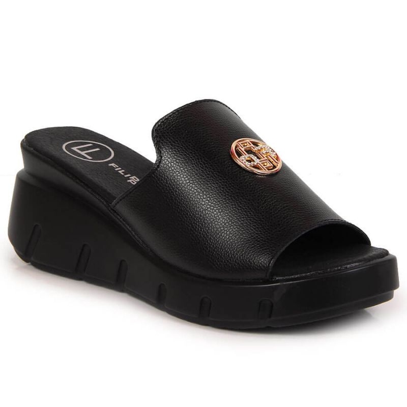 De eleganta och bekväma Filippo Flip Flops i PAW362A är ett idealiskt förslag för varma dagar. Klassisk, universell svart och läder övre och foder säkerställer hållbarhet och komfort vid användning, och en 7-centimeter kil förlänger subtilt figuren samtidigt som stabiliteten bibehålls.