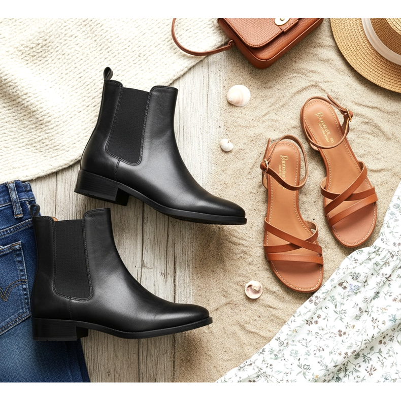 Tredje och fjärde paret: stövlar för hösten och sandaler för sommaren