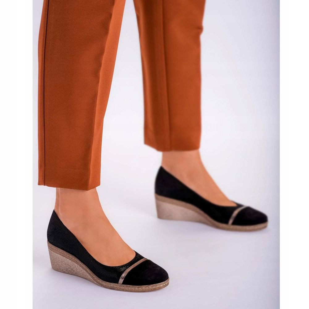 Det högkvalitativa materialet som sulan är gjord av säkerställer stabilitet och en lämplig nivå av dämpning när du går. Tack vare detta är skorna perfekta även för intensiv användning. En 5 cm hög kil är en perfekt lösning för kvinnor som vill förlänga benen optiskt utan att ge avkall på bekvämligheten med platta skor.