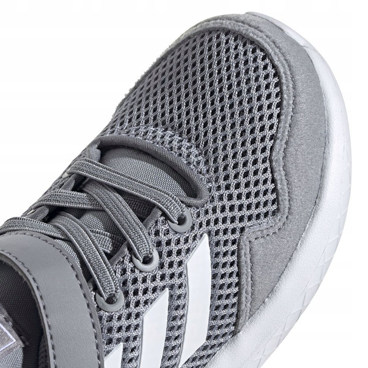 Den fashionabla grå färgen med gröna accenter ger skorna karaktär, och deras sportiga stil kommer säkert att tilltala unga entusiaster av fysisk aktivitet. Tack vare praktiska kardborrefästen kommer barn att kunna ta på och ta av sig skorna utan problem.