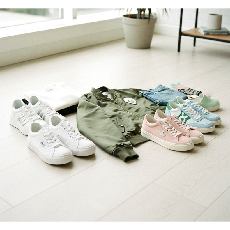 Om du vill sätta lite färg på din outfit kan du välja sneakers i pastellfärger – rosa, blå eller grön. Dessa bomberjackaskor är perfekta för våren och sommaren och skapar en fräsch, ungdomlig look.