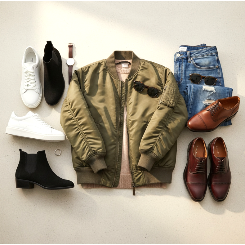 Som du kan se är att välja skor för en bomberjacka ett extremt brett ämne som erbjuder många stylingalternativ. Oavsett om du föredrar casual eller mer elegant stil, kommer rätt skor hjälpa dig att skapa den perfekta outfiten för alla tillfällen. Kom ihåg att nyckeln till framgång är att upprätthålla en balans mellan funktionalitet och stil – välj skor som inte bara ser bra ut, utan också ger komfort under vardagsbruk.