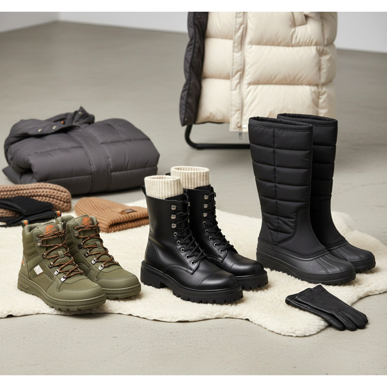 På vintern, när du väljer en tjock, varm dunjacka, fungerar isolerade skor bäst. Isolerade stövlar, snökängor eller stövlar med päls ger tillräckligt skydd mot frost samtidigt som de ser moderiktiga ut. Det är värt att välja modeller med halkfria sulor, vilket garanterar säkerheten på isiga ytor.