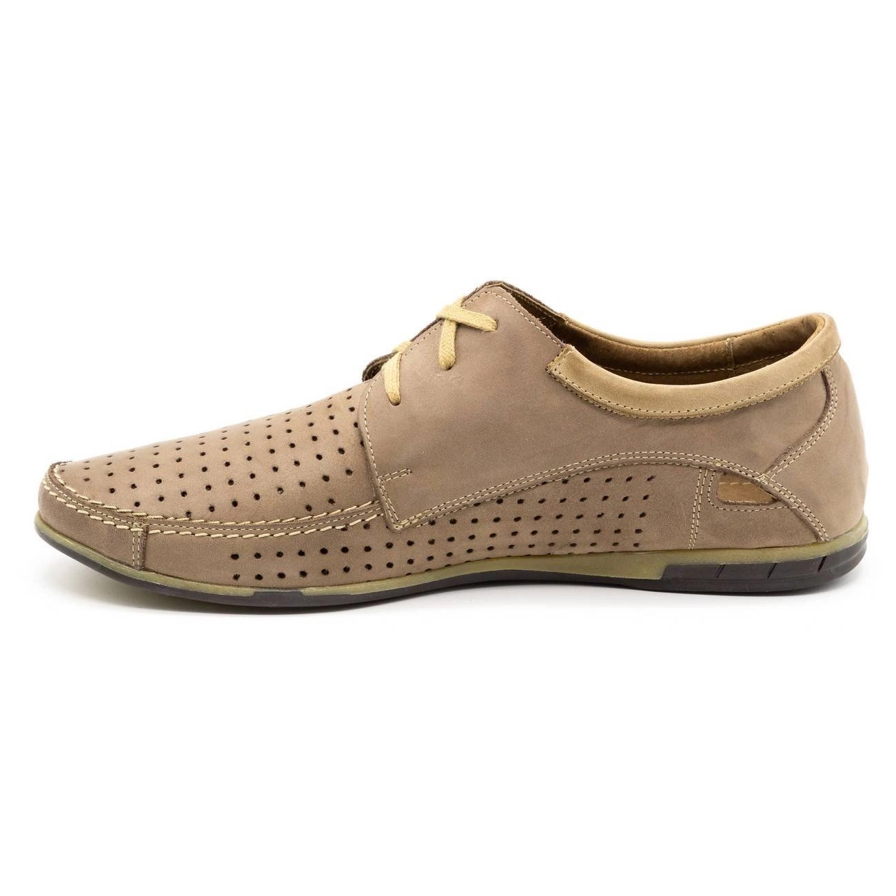 Här är det perfekta förslaget för sommardagar - genombrutna Mario Pala herrskor i en elegant nyans av beige. Dessa läderskor är inte bara ett utmärkt val när det gäller stil, utan också oöverträffad bärkomfort. Tack vare användningen av naturligt läder både utanför och inuti skorna förses fötterna med lämplig värmeisolering, vilket är avgörande under varmare dagar.