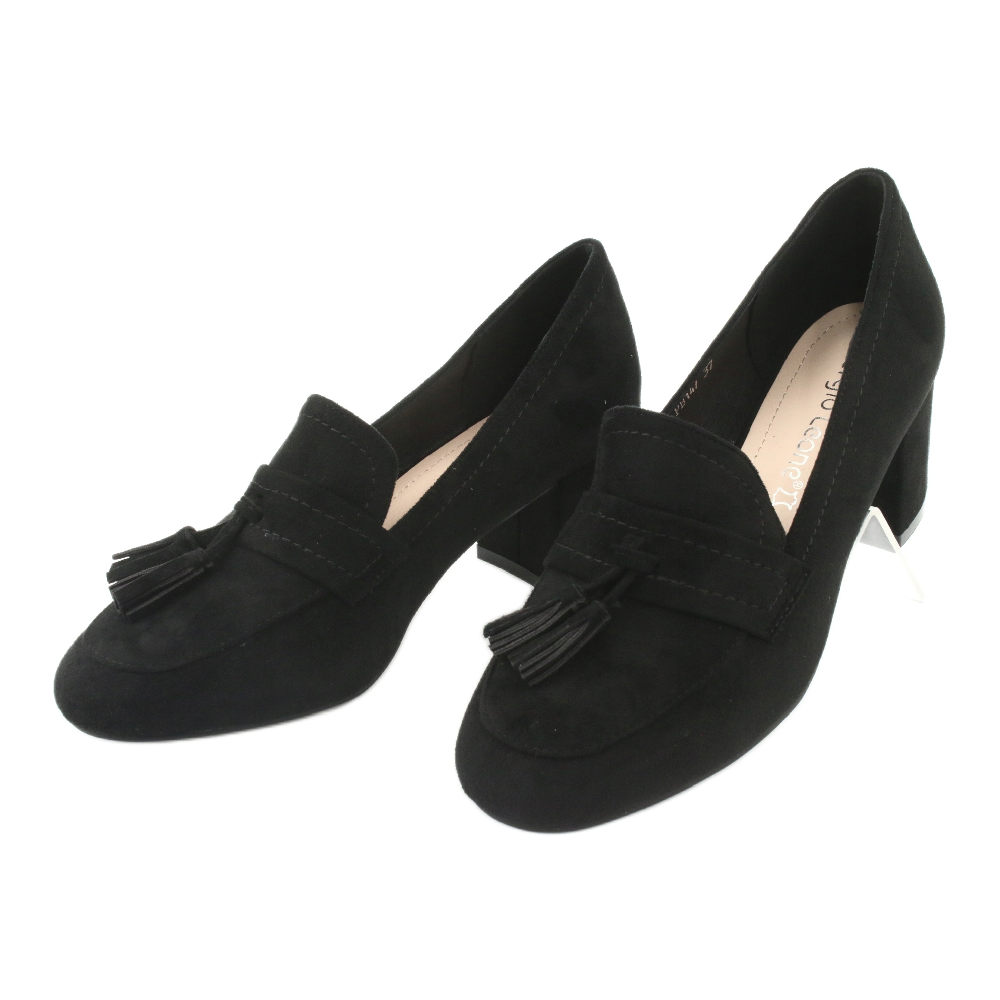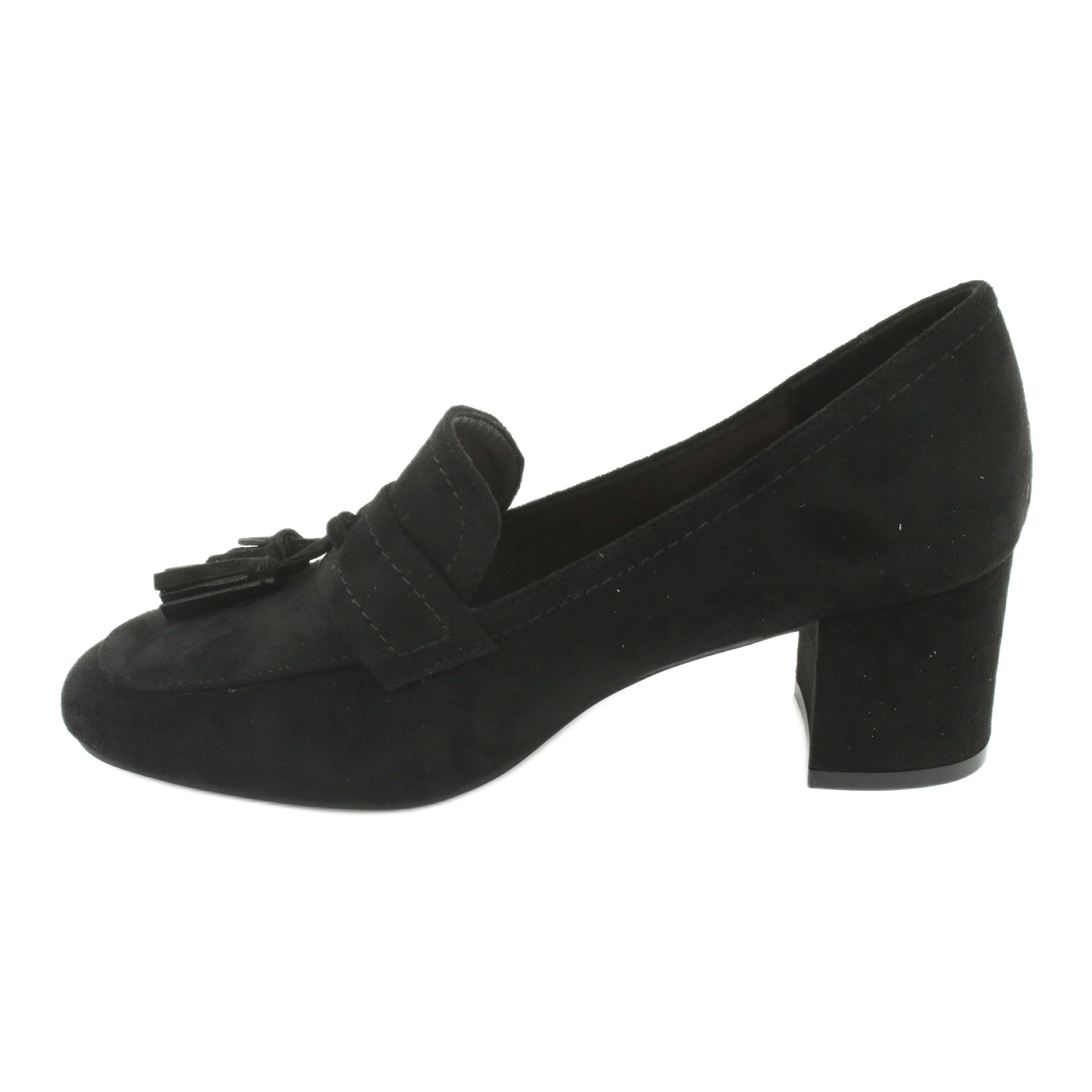 Sergio Leone PB147 svarta högklackade skor verkar vara synonymt med elegans kombinerat med komfort. Denna modell, som kommer att charma älskare av tidlös design, utstrålar subtil chic tack vare ekologiskt svart mockaläder, som utan tvekan tillför charm till varje styling. En karakteristisk detalj är fransar som introducerar en dynamisk accent, särskilt vid rörelse - ett element som lockar uppmärksamhet och lägger till originalitet.
