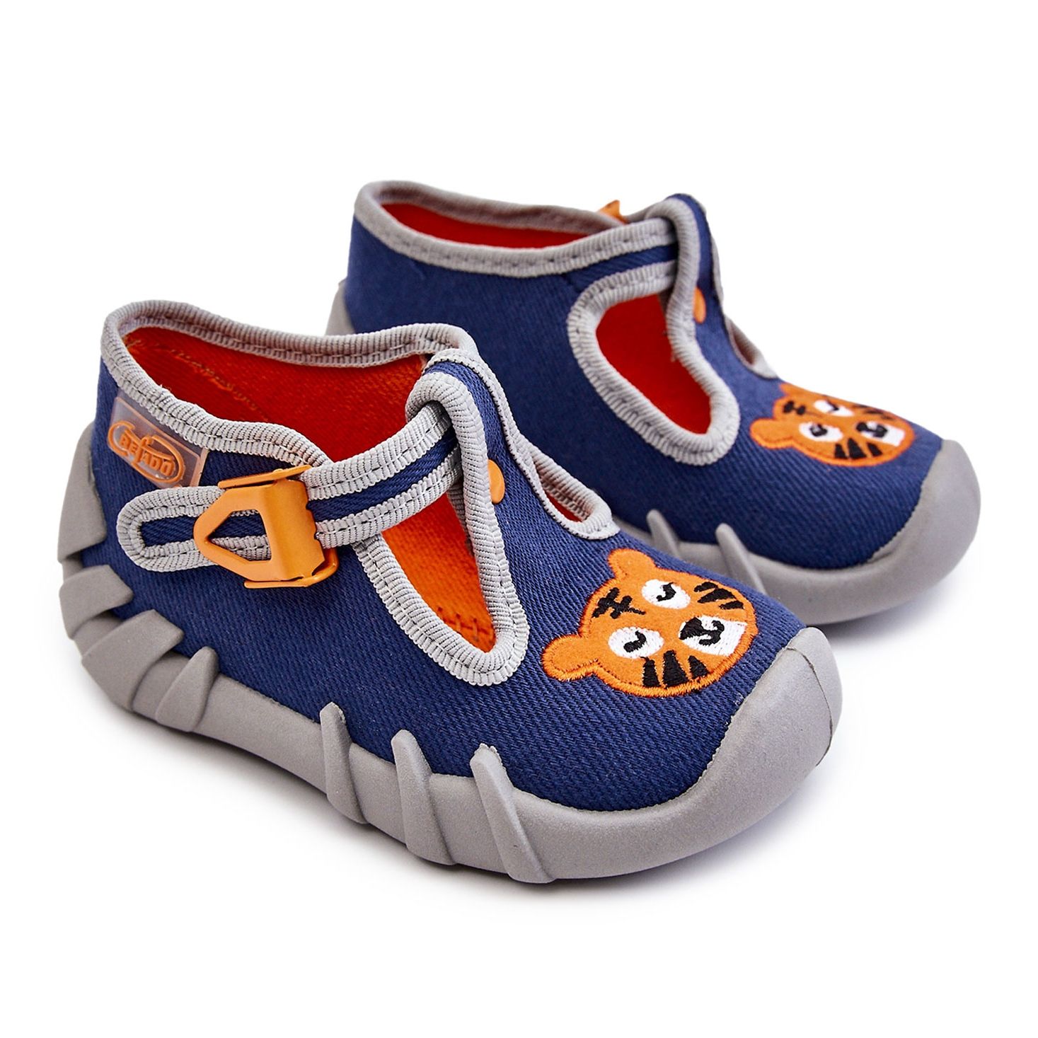 Charmiga, bekväma och säkra - Befado Tiger -tofflor är det perfekta valet för upptagna småbarn. Mjukt tyg, fäst med kardborrbandet, håller foten perfekt, säkerställer ett stabilt steg och mer pålitlig rörelse. Ett brett tips ger mycket utrymme för fingrarna, och en andningsbar, flexibel sula bryr sig om komfort varje dag. Modell rekommenderas av ortopedister.