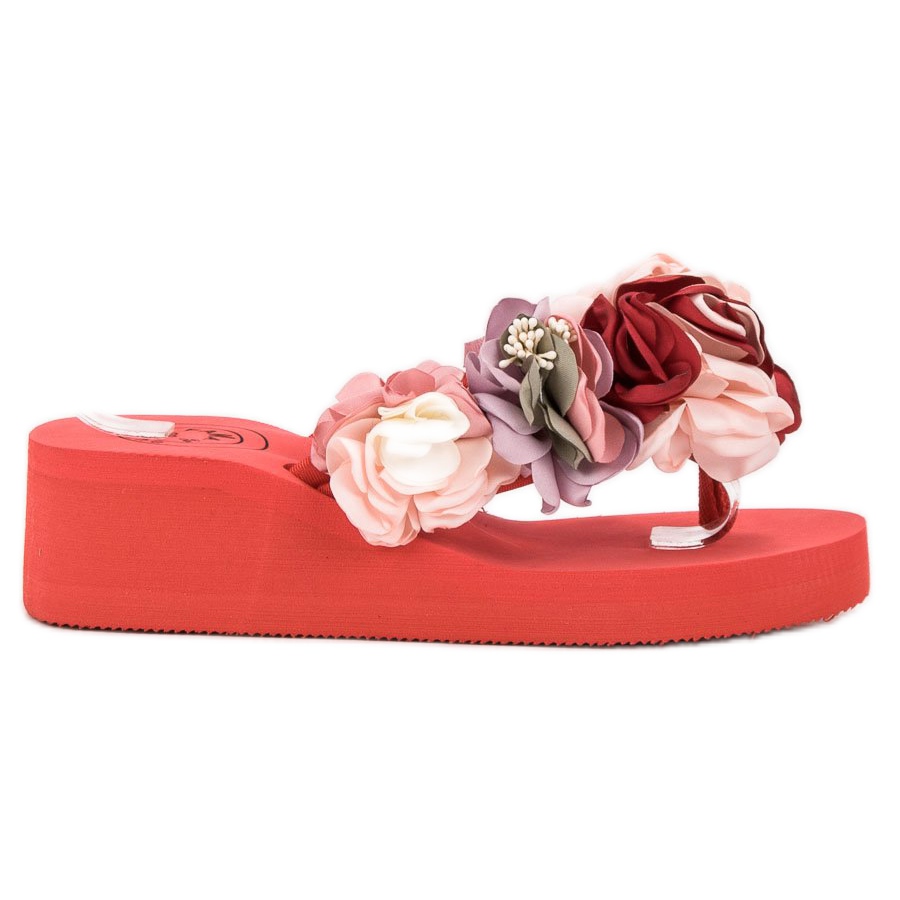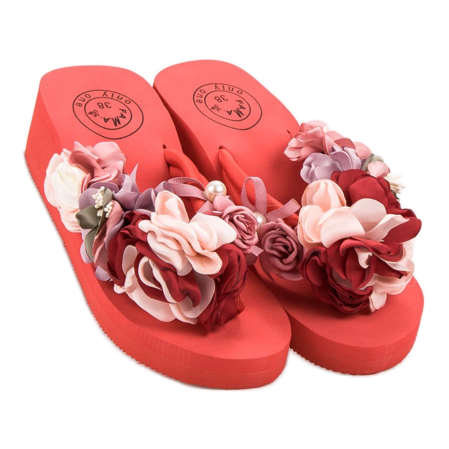 Upptäck charmen och komforten hos Fama Foam Wedge Flip-Flops-modellen i en intensiv röd färg. Dessa extremt feminina flipflops är det perfekta valet för varma sommardagar, dekorerade med vackra blommotiv som ger dem lätthet och fräschör.