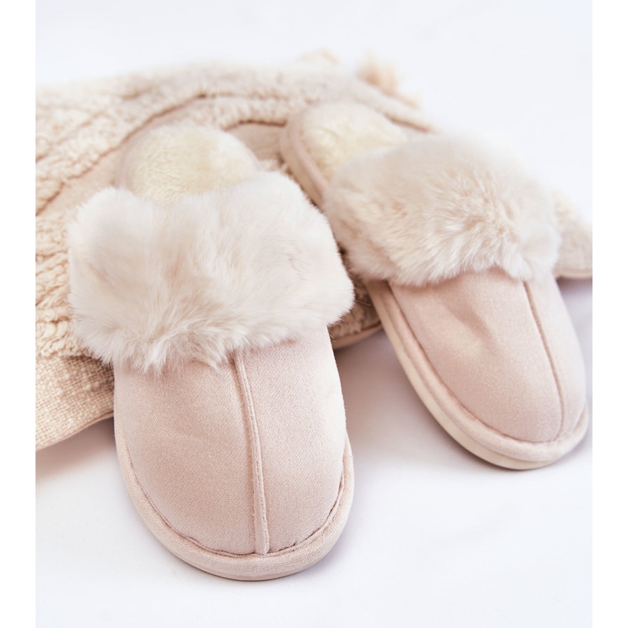 Detaljer: BM Släta tofflor för kvinnor med päls Ljusbeige Morisea