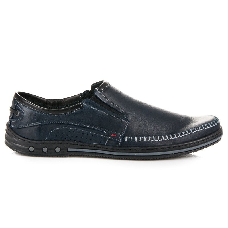 Klassiska Lucca slip-on mockasiner i marinblått är ett universellt förslag för män som letar efter bekväma vardagsskor. Tillverkade av naturligt läder både på utsidan och insidan (innersula), de kombinerar hållbarhet med komfort att bära. Den runda nosen och den diskreta formen utan mönster gör modellen perfekt för både casual och smart casual styling. Den låga sulan på 3 cm ger ett subtilt lyft utan att ge avkall på komforten.