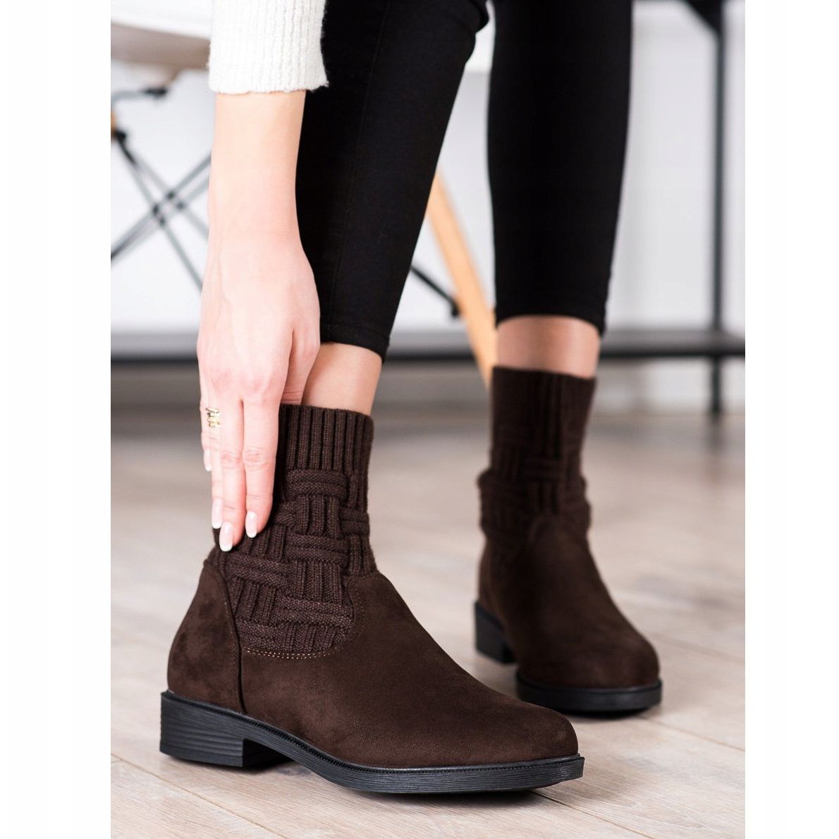 Stövlarna är gjorda av material som imiterar mocka och njuter av sin enkelhet och elegans, och den bruna färgen passar perfekt till många stilar. Tack vare den rundade tån och mjuka hälen säkerställer skorna bärkomfort hela dagen.