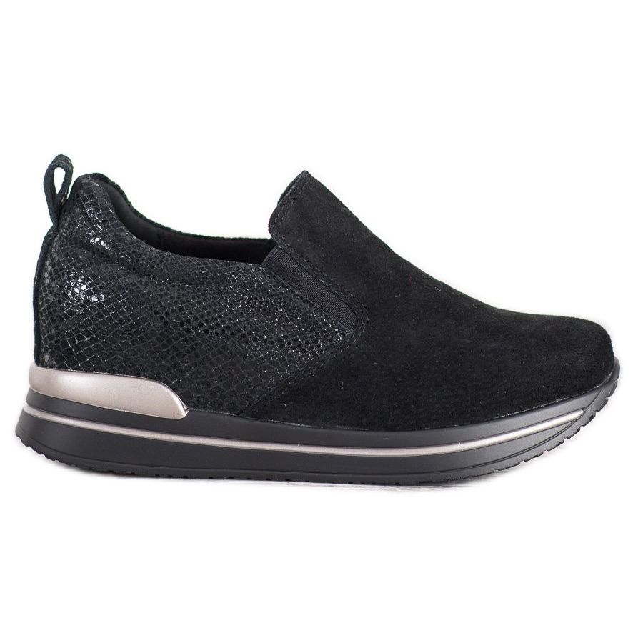 Upptäck Filippo Leather Slip-On Shoes - det perfekta valet för kvinnor som värdesätter komfort och modern stil. Dessa eleganta svarta skor är ett perfekt komplement till alla avslappnade stilar, både för vardagsbruk och för mindre formella tillfällen.