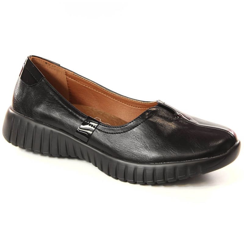 Eleganta, bekväma och universella kvinnors skor Jezzi Jez394 i svart, skapad för daglig användning. Den låga modellen med ett glidande fästelement är idealiskt lämpad för att arbeta, för en promenad och för sociala sammankomster - kombinerar mockasins komfort med elegansen av halvburkar.