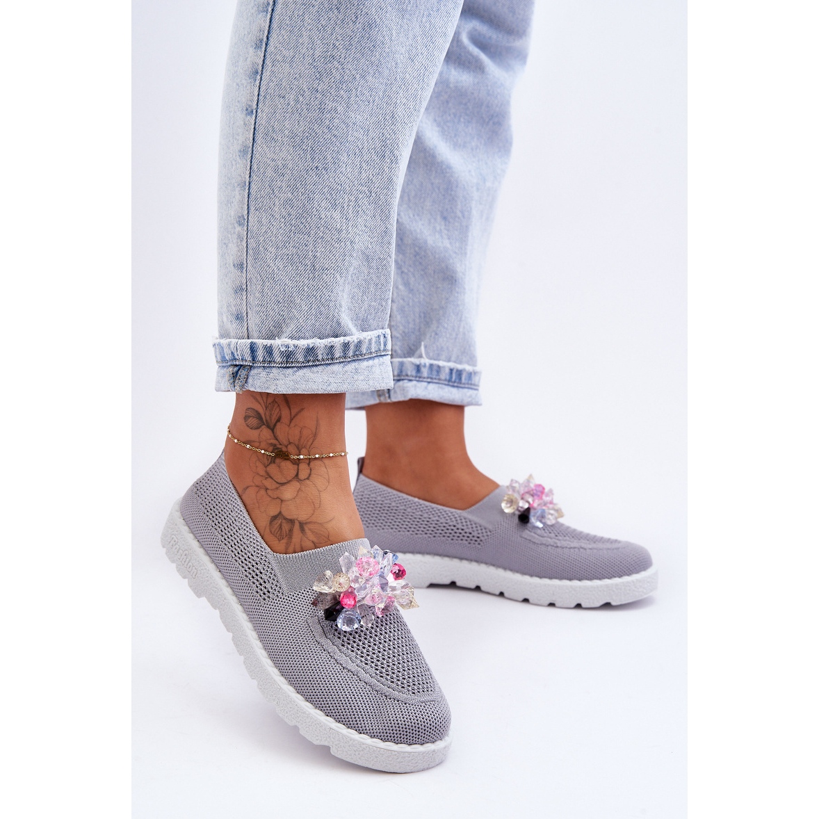 PM1 Kvinnors insatta sneakers med stenar - grå