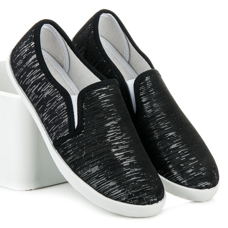 Vi presenterar slip-on sneakers med silvertråd i en klassisk svart färg, perfekta för varje kvinna som värdesätter komfort och stil. Dessa låga skor är gjorda av högkvalitativt tyg, vilket garanterar inte bara komfort utan också hållbarhet och motståndskraft mot dagligt bruk.