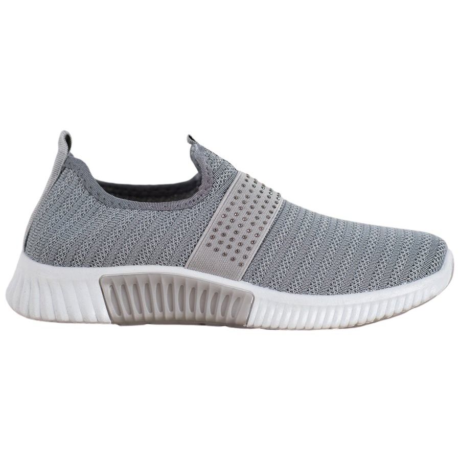 Upptäck elegans och komfort med SHELOVET slip-on sportskor i en grå nyans. Tillverkade av högkvalitativt textilmaterial, dessa snygga skor kännetecknas av en dekorativ textur och en spektakulär bred rem med strass, vilket ger dem en unik karaktär.