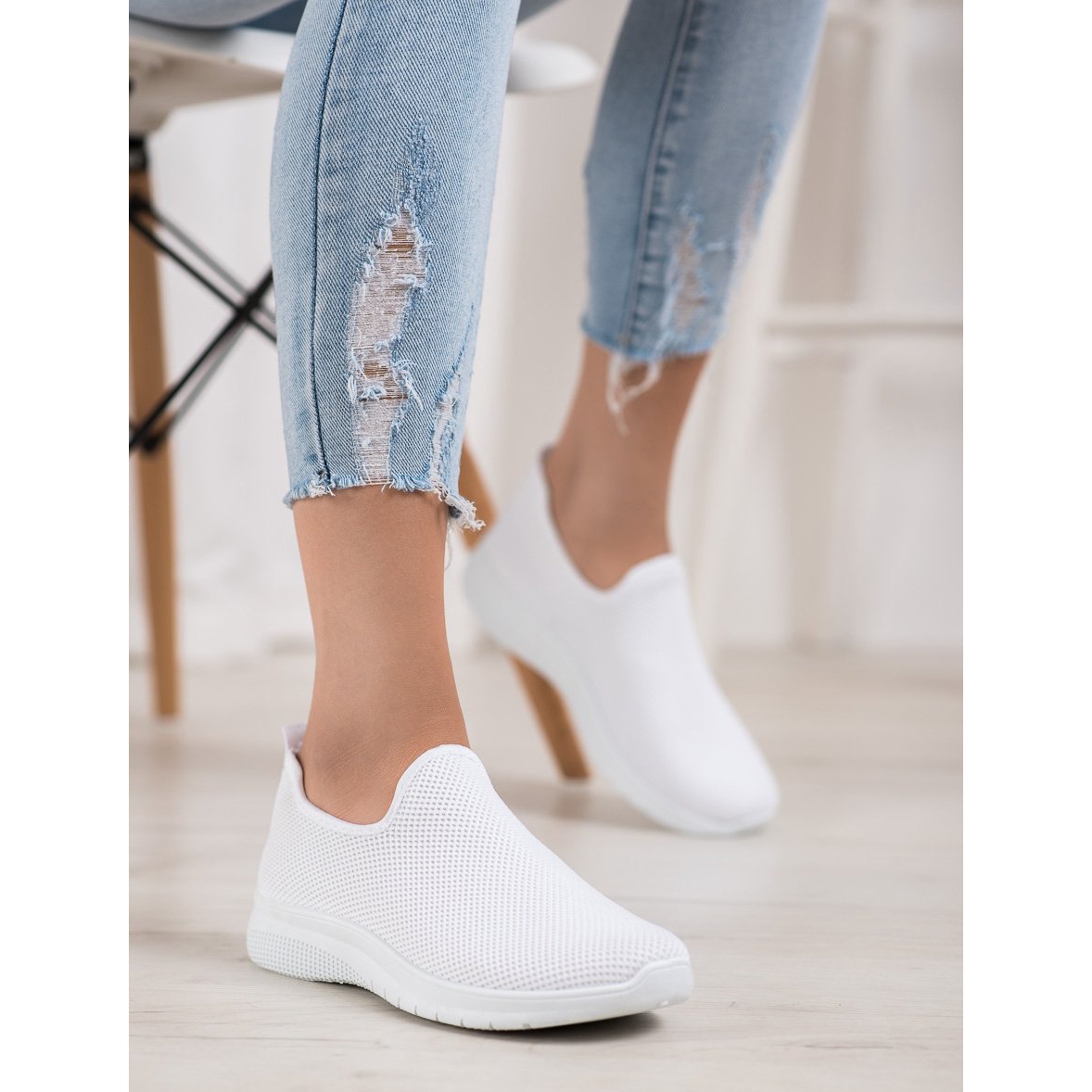 Super Mode Slip-on sportskor i vitt är ett perfekt val för kvinnor som värdesätter komfort och stil i vardagsbruk. Dessa lätta och luftiga skor kommer att tillföra lite fräschör till din garderob för vår och sommar. Tillverkade av högkvalitativa textilmaterial ger de full ventilation och komfort att bära, perfekt för långa promenader eller vardagliga sysslor.