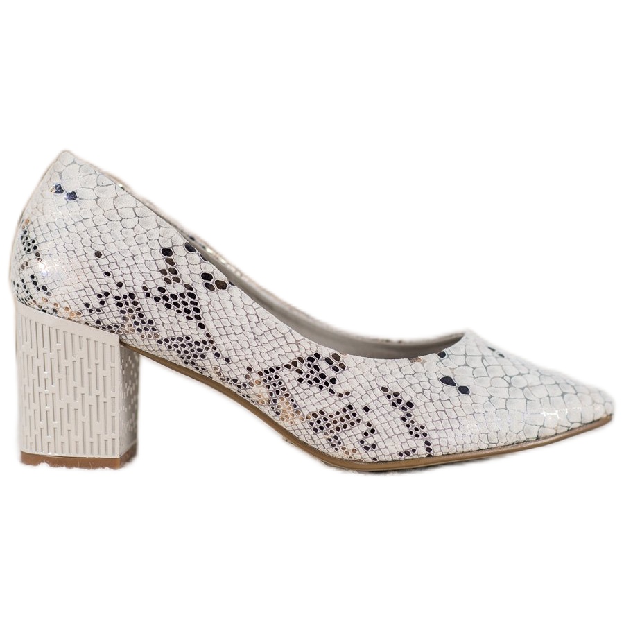De erbjudna pumparna är designade för kvinnor som vill sticka ut från mängden. Den låga stolpen, 6,5 cm hög, säkerställer att den bärs bekvämt varje dag, samtidigt som den tillför elegans till alla kläder. Denna modell kan framgångsrikt bäras både för ceremonier och för kvällsutflykter eller tillfälliga möten.