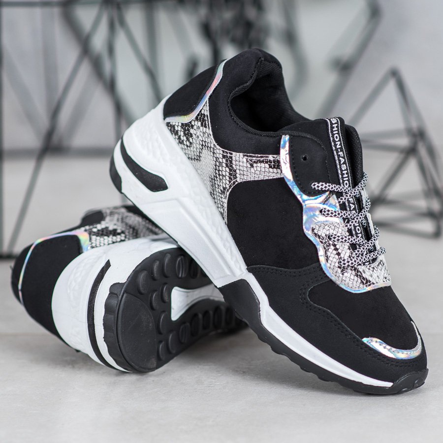 SHELOVET Snake Print sneakers i svart är ett idealiskt alternativ för kvinnor som vill kombinera komfort med en moderiktig look. Dessa unika sportskor matchar perfekt aktuella trender och drar till sig uppmärksamhet med ett iögonfallande djurmönster som imiterar ormskinn.