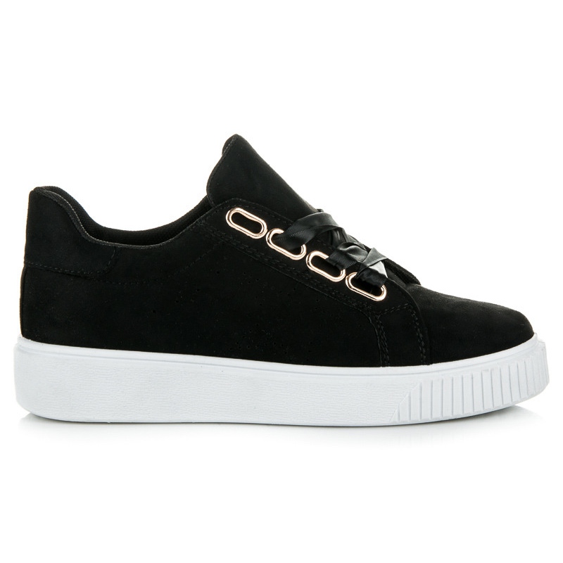 Utrustade med en praktisk snörstängning kan dessa sneakers enkelt anpassas efter dina individuella behov. Plattformshöjden på 3 cm tillför lätthet och subtil elegans, och den svarta färgen gör dem till ett universellt komplement till många stilar - från avslappnad till mer elegant.