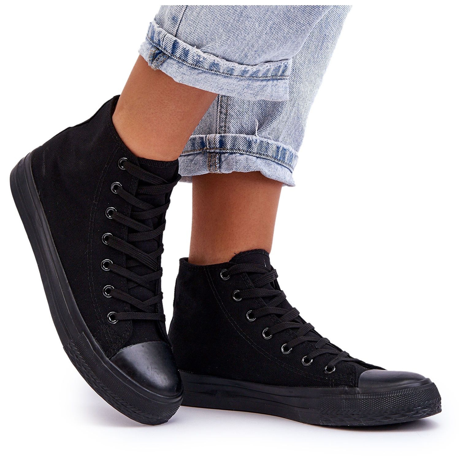 Kvinnors svarta socerio -sneakers är ett utmärkt val för kvinnor som vill kombinera komfort med ett fashionabelt utseende. Dessa höga sneakers är tillverkade av högkvalitativt textilmaterial och erbjuder nöjet att bära hela dagen. Den klassiska, svarta färgen gör att de passar perfekt in i alla stiliseringar - både vardagliga och mer eleganta.