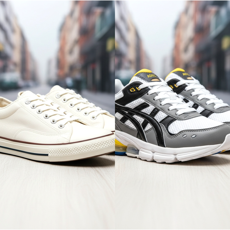 Vikt och komfort. Tack vare sin enkla konstruktion är sneakers oftast lättare än sneakers. Denna sneaker erbjuder dock större komfort när den bärs under längre perioder tack vare bättre fotvalvsstöd och dämpning.