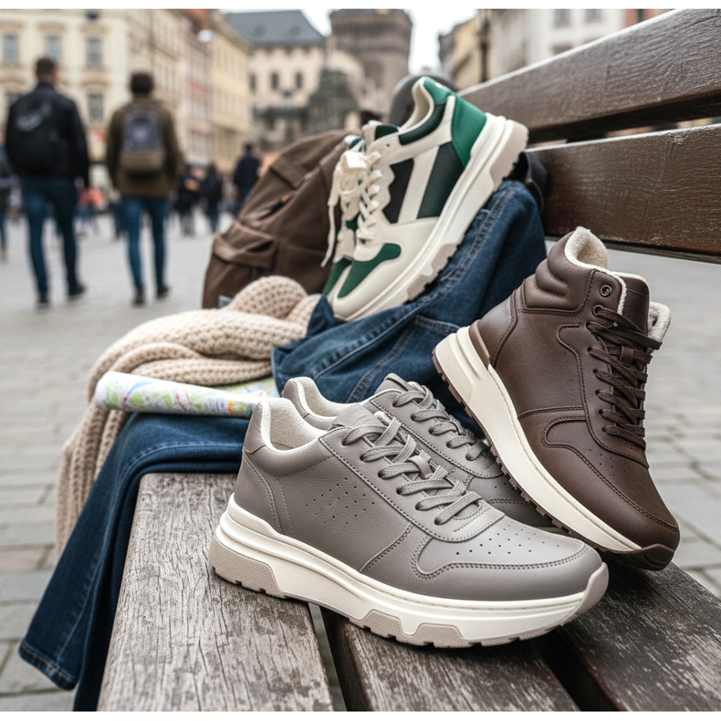 Sneakers är också ett idealiskt val för mer olika stilar. Modeller med tjockare sula ger höjd och karaktär till outfiten. Lädersneakers i dämpade färger kan ersätta eleganta skor i mindre formella kontorsmiljöer.