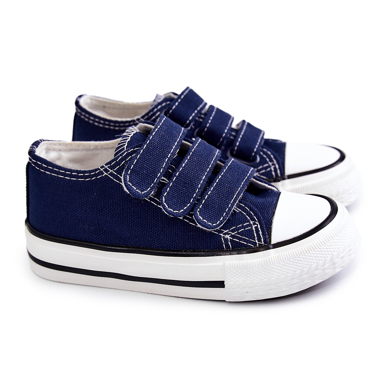 Klassiska sneakers med fotleden framför vristen, perfekt för våren och sommarsäsongen. Tillverkad av hållbart tyg, med dekorativa sömmar och förstärkt gummitån. Fäst med praktisk kardborrband - snabbt att sätta på sig även för den yngsta. De ligger på en delikat plattform (cirka 1,5 cm) med en icke -slipssula och ger ett gott grepp och komfort i promenader.