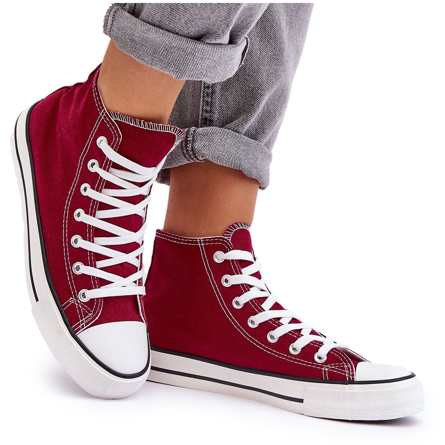 Detaljer: Sneakers för damer Klassiska Höga Burgundy Remos röd